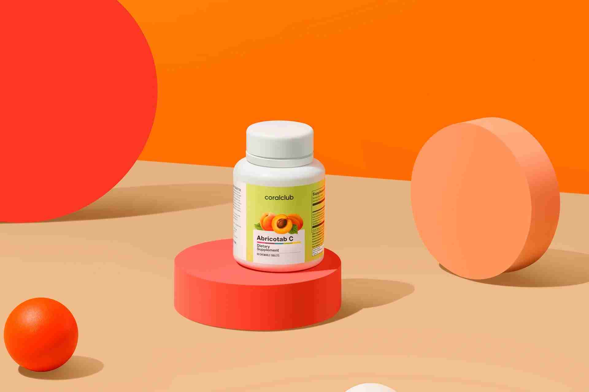 Sisaldus:1 tablett NRV* Aprikoosi (Prunus armeniaca) lüofiliseeritud pulber880 mg - C-vitamiin (L-askorbiinhape)100 mg 125% Abikomponendid: magneesiumstearaat (stabilisaator). *NRV – soovitatav päevane kogus täiskasvanutele -Soovitatav päevane kogus täiskasvanutele ei ole installeeritud Netokogus: 60 g