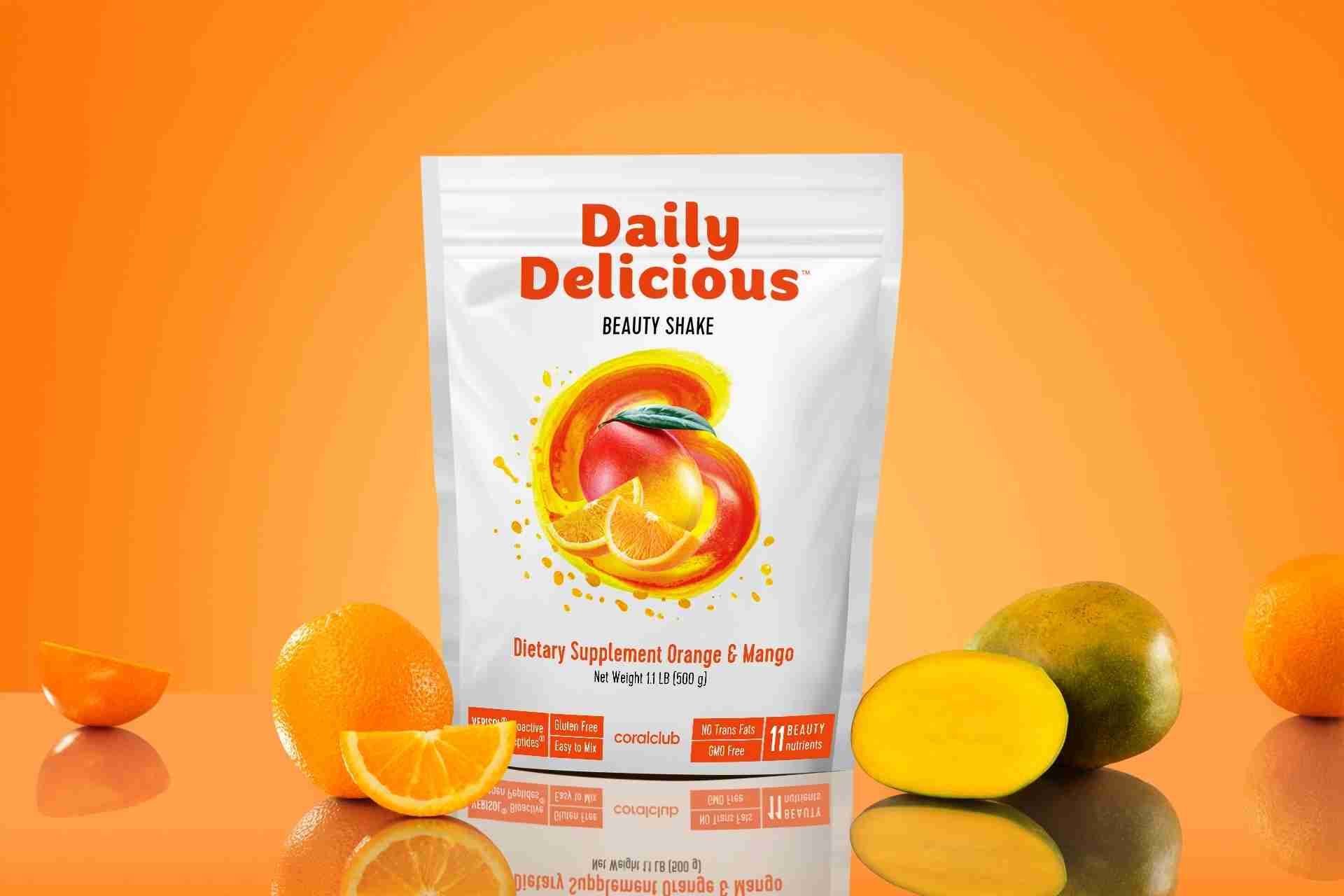 Daily Delicious Beauty Shake, 500 g / 20 portions, Orange & Mango, 500 g / 20 portions