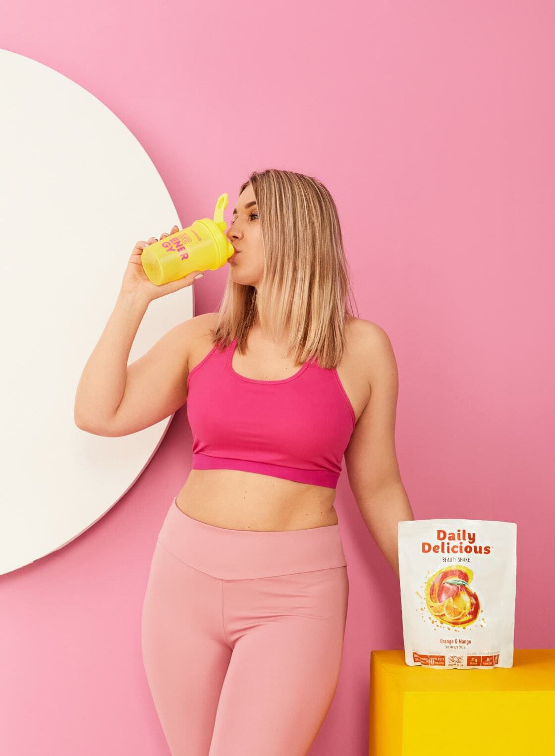 | Koostisosad: magusained (erütritool, stevioolglükosiidid), piimaproteiin (29,0%), vadakuproteiini kontsentraat (17,0%), eraldatud sojaproteiin (12,0%), naturaalne mango ja apelsini maitse, paksendaja guarkummi, magneesiumtsitraat, hüdrolüüsitud kollageen (Verisol®), naatrium-L-askorbaat, paakumisvastane aine (ränidioksiid), para-aminobensoehape, emulgaator (sojaletsitiin), d-alpha-tokoferüülatsetaat, L-selenometioniin, nikotiinamiid, kaltsium-D-pantotenaat, vaskglükonaat, retinüülatsetaat, pteroüülmonoglutaamhape, D-biotiin. | ||